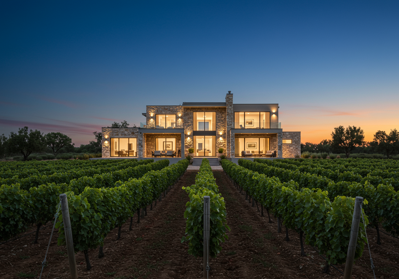 It is not just a sweet dream! It is a magical destination where you can immerse yourself in a Total Wellness Lifestyle in the most beautiful setting, sipping your own wine lable in a Roof Terrace overlooking the Vineyard. TOUR THE HOME by night!